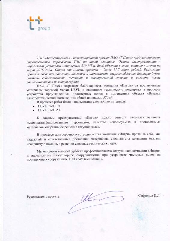 "...компания "ИНГРИ" проявила себя как надежный и ответственный поставщик материалов, специалисты компании оказали неоценимую помощь в решении сложных технических задач."